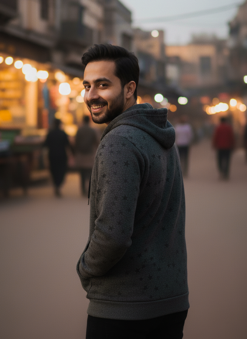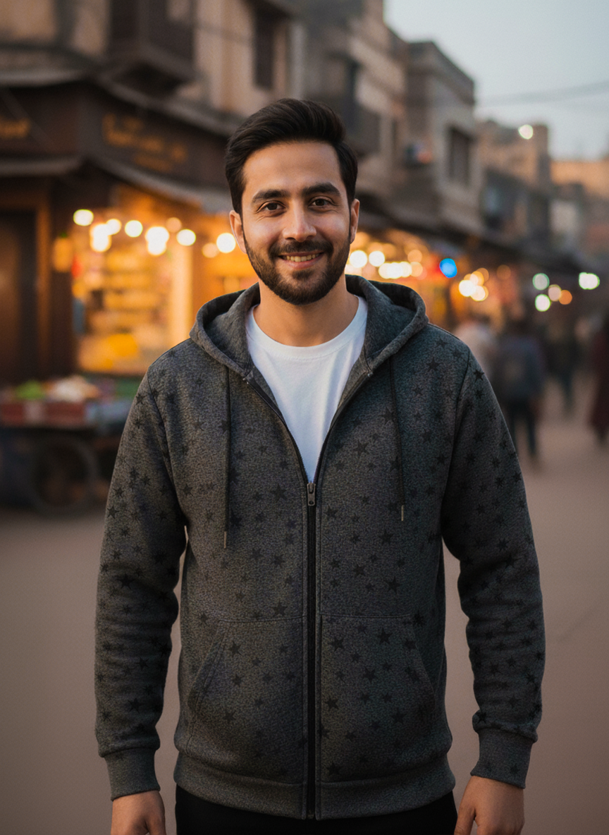 Winter Star Printed Zipper Hoodie For Men